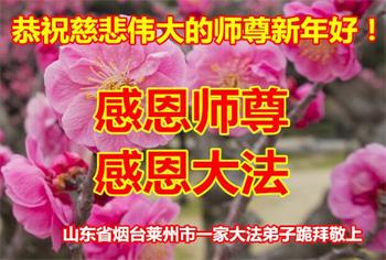 山东烟台招远市两名大法弟子恭祝慈悲伟大的师尊新年快乐!