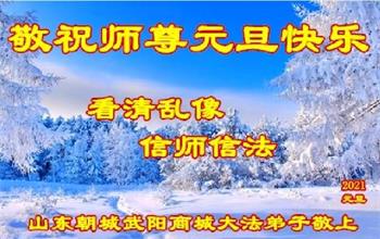 【明慧网二零二一年一月一日】 山东省朝城武阳商城全体阳商城全体大法弟子恭祝师父新年快乐!新年快乐!