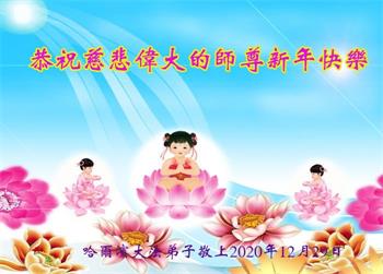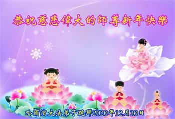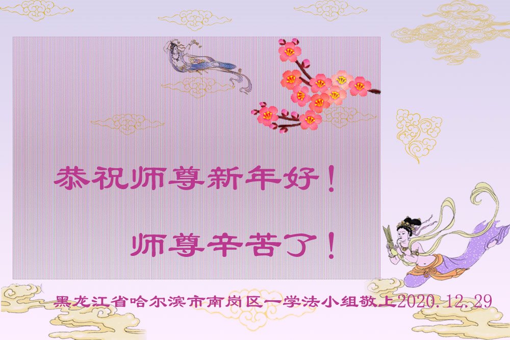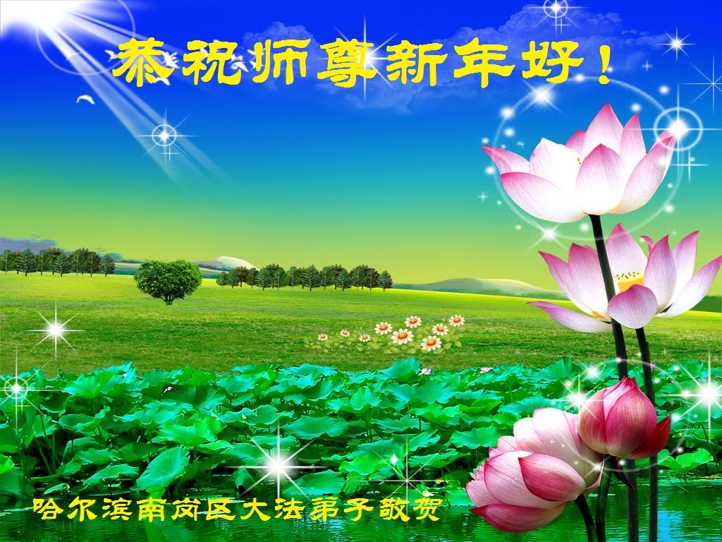 祝师父新年好!新年快乐! 在最后时刻,做好三件事,听师父话,修好自己,救度更多的众生! 黑龙江哈尔滨市南岗区一学法小组大法弟子恭祝师尊新年好!