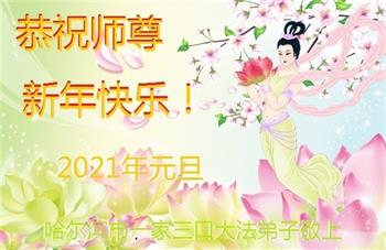 【明慧网二零二一年一月一日】 黑龙江省、哈尔滨市一家三口大法弟子恭祝伟大慈悲的师尊新年好!