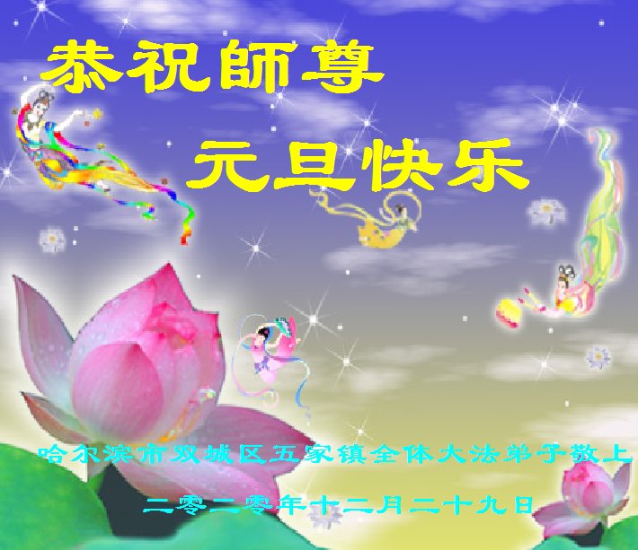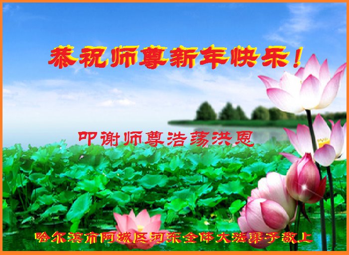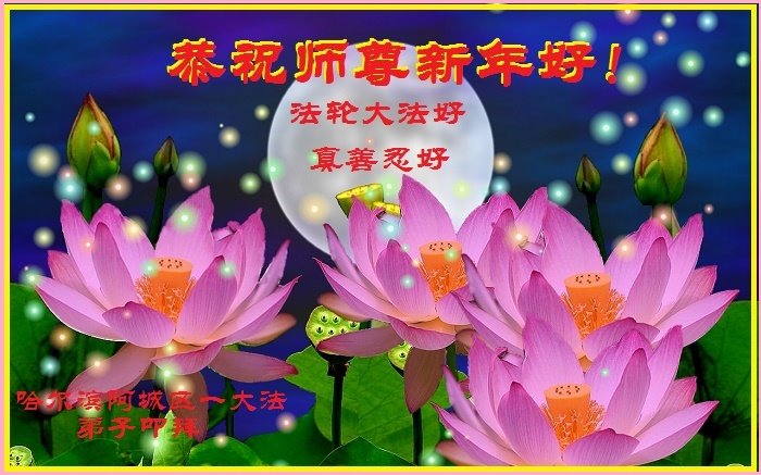黑龙江哈尔滨大法弟子恭祝慈悲伟大的师尊新年快乐!