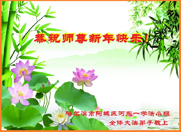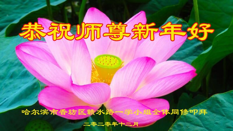 法轮大法好!真善忍好!谢谢师尊一路的保护和救度!我们要圆容配合多救人,圆满随师还! 黑龙江哈尔滨市赣水路一学法小组大法弟子恭祝师尊新年好!