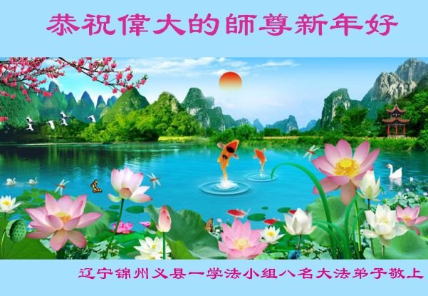 尊敬的师父:您好!新的一年即将到来之际,我以无比感激之情向师父呈上最诚挚的问候!师父您辛苦了!祝师父新年快乐!喜逢大法之前,我不知人生目地,稀里糊涂的生活几十年。可喜的是在这迷茫之中弟子遇到了您,得到了千载难逢的宇宙大法,明白了生命的真谛。感谢师父的慈悲苦度和巨大付出,为弟子铺就了回归生命本源的修炼之路。是师父的巨大承受才使弟子走到今天。师父您辛苦了!我一定珍惜师父用巨大的付出延续来的宝贵时间,努力做好三件事,修好自己,多救人,回报师父的救度之恩! 辽宁省锦州大法弟子恭祝师尊新年快乐!