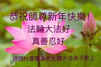 德国大法弟子恭祝师尊新年快乐!请师尊放心,我会在新的一年里更加精進,做好三件事,救更多的众生,圆满随师还! 德国北威州杜伊斯堡大法弟子恭祝师尊新年好! 瑞士大法弟子恭祝师尊新年好! 荷兰大法弟子恭祝慈悲伟大的师尊新年快乐!