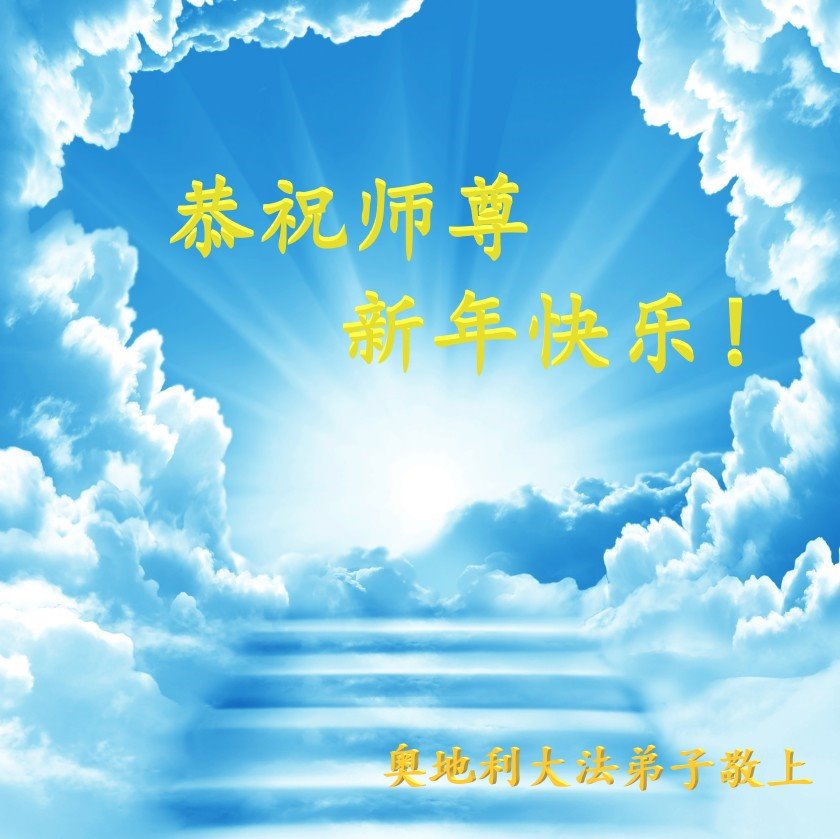 奥地利大法弟子恭祝慈悲伟大的师尊新年快乐!