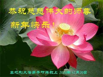 师父辛苦了!师父为弟子,为众生承受的太多太多,弟子无以用语言表达对师父的感激之恩。感恩师父,感恩大法。 叩谢师父。 德国北威州一大法弟子敬上 荷兰大法弟子恭祝慈悲伟大的师尊新年快乐!