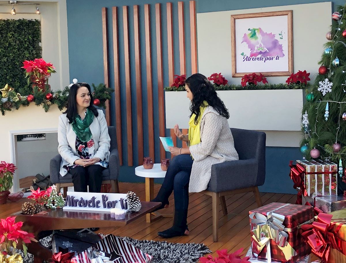 【明慧网二零二一年十二月二十六日】圣诞节来临之际,墨西哥的主要公共电视频道——Mexiquense TV(墨西哥电视)邀请法轮功学员,在其圣诞健康与福祉特别节目中介绍法轮大法的美好。该节目分别于二零二一年十二月二十日,和二零二二年的一月播放。 图1:墨西哥电视《Dare for you》的电视节目中,主持人利贾·雷耶斯(Ligia Reyes,右)采访詹妮弗·加西亚(Jeniffer García,左)。(图片来源:Mexiquense TV) |