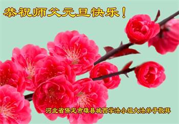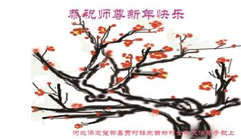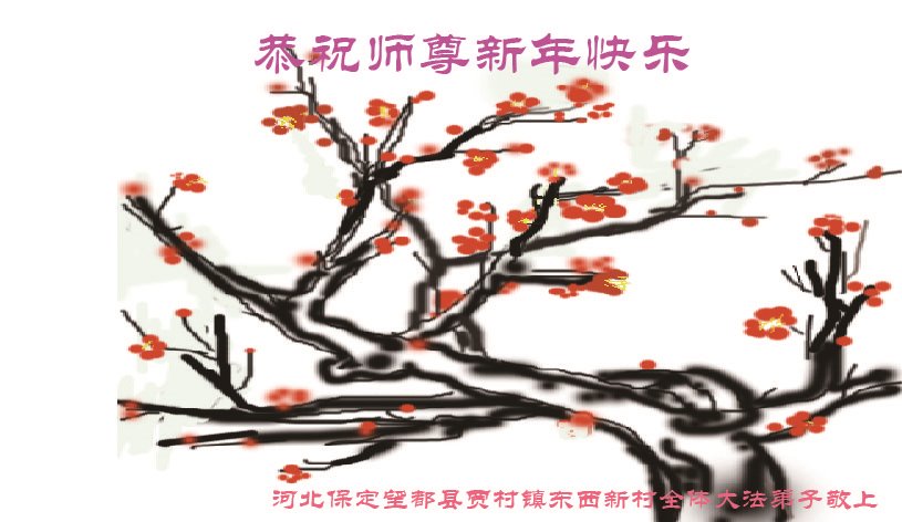 河北省望都县贾村乡全体大法弟子恭祝师尊新年好!师尊新年快乐! 愿师尊多一份欣慰,少一份操劳,弟子唯有精進再精進以报师恩。 一年又一年 大法世上传 众生能得救 法徒真相传 做好三件事 圆满随师还 河北省保定涞源一学法小组大法弟子恭祝慈悲伟大的师父新年快乐!