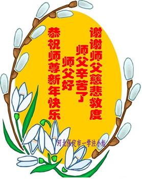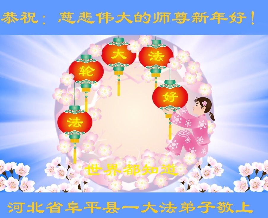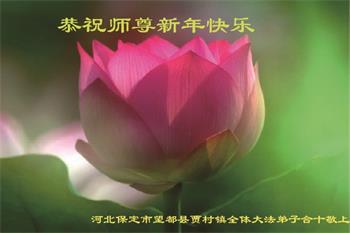 新年佳节之际,弟子们以纯真的心,向慈悲伟大的师尊致以最崇高的敬意和新年问候! 师尊新年好!师尊辛苦了!法轮大法好!真善忍好! 在过去的一年里,弟子们在做三件事上,离师尊的要求还差得很远,在救人的过程中也出现过神奇和惊险,都在师尊的慈悲保护下走了过来。在新的一年里,我们会按照师尊的教诲努力做好。千言万语无法表达对师尊的感恩。只有做好师尊所要求的,学好法,多学法,时刻向内找。不被乱法邪悟者带动,不被人世间动态带动。才能对得起师尊赋予弟子们的称号。才能兑现自己的誓约。才能随师尊回家。 保定市望都县贾村镇全体大法弟子合十敬上 河北省保定涞源县大法弟子恭祝师父新年快乐!