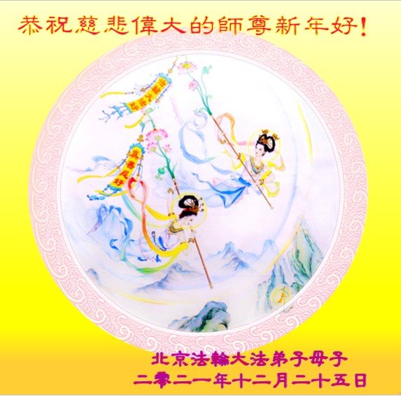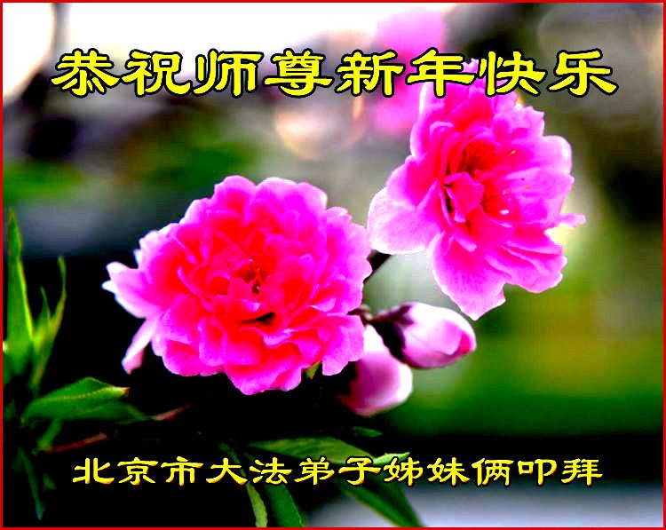 恭祝师尊新年快乐! 北京市姊妹俩大法弟子叩拜师尊 北京朝阳区北苑大法弟子恭祝慈悲伟大师尊元旦快乐!