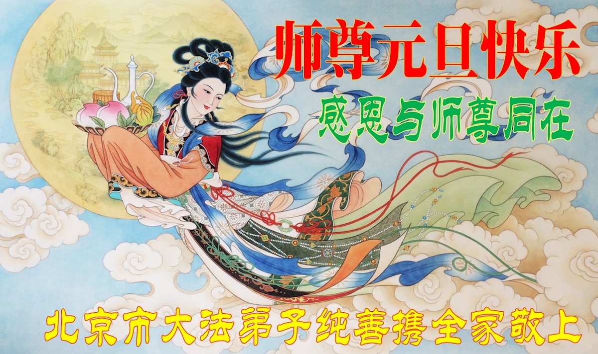 北京市昌平区一家三口大法弟子恭祝慈悲伟大的师尊新年快乐!