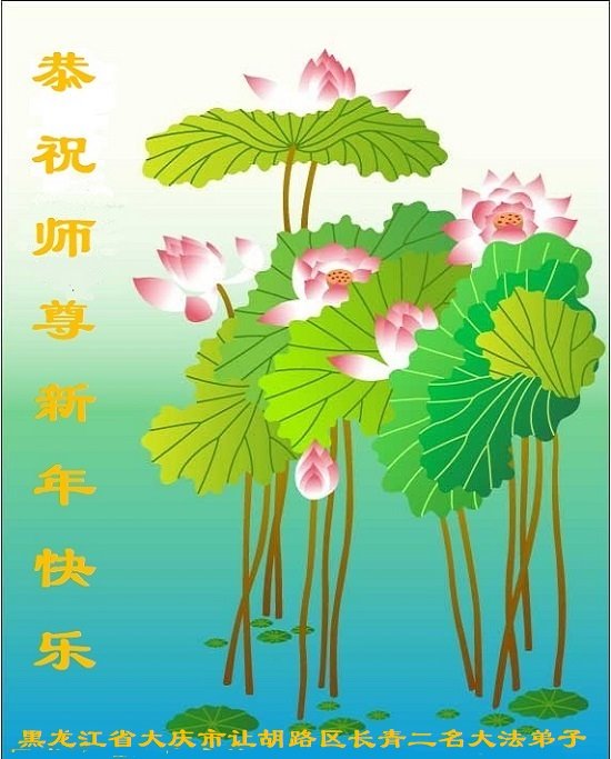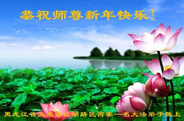 黑龙江省大庆市让胡路区长青小区二名大法弟子恭祝师尊新年快乐!