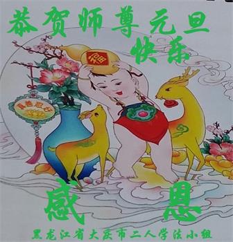 黑龙江大庆市两人学法小组大法弟子恭祝师尊元旦快乐!