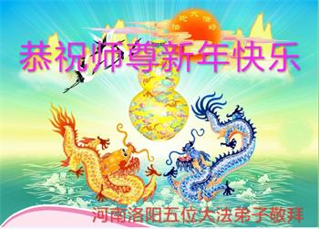 河南省禹州市法轮大法弟子一家三口携禹州市全体大法弟子恭祝慈悲伟大的师尊新年快乐! 法正人间在即,弟子谨记师尊教诲,不管社会如何动荡,末后乱象纷呈,弟子坚守修炼初衷不变,向内找,修好自己,圆满随师还! 叩谢无量慈悲的师尊救度! 河南省洛阳大法弟子恭祝师父新年好!