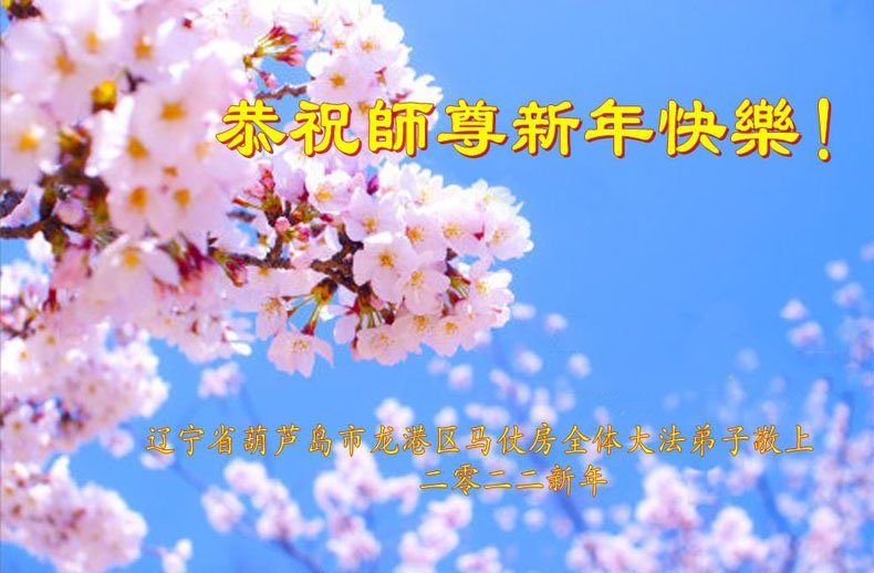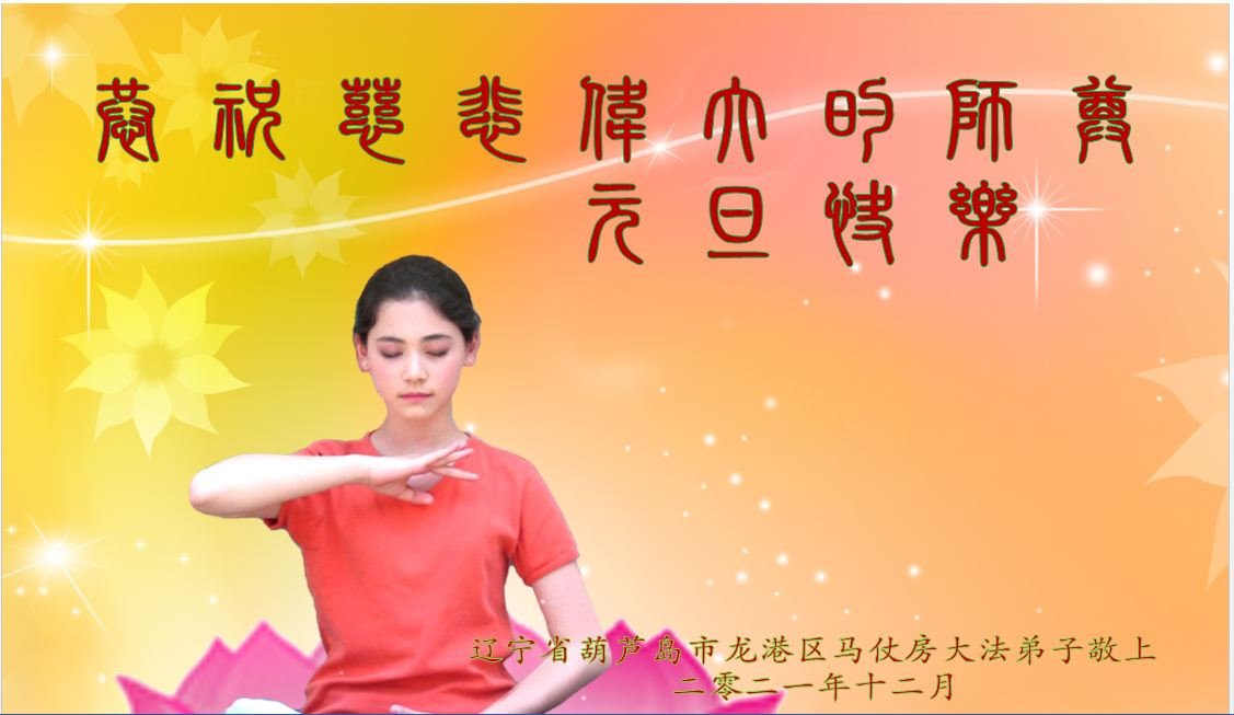 恭祝师尊元旦快乐! 新的一年到来之际,弟子感谢伟大师尊慈悲苦度! 辽宁省葫芦岛市龙港区马仗房大法弟子合十敬上 二零二一年十二月二十四日 辽宁省葫芦岛望海寺大法弟子恭祝慈悲伟大的师尊新年快乐!