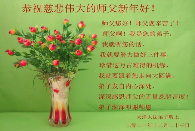 【明慧网二零二一年十二月二十九日】 天津一大法弟子恭祝师尊新年好!