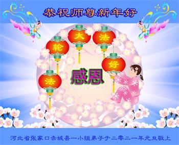 阳原大法弟子恭祝师尊新年好!我们全体弟子一定要修好自己,相互配合多救人,紧跟师父正法進程,不负师尊苦度。 河北省张家口市赤城县一学法小组全体大法弟子恭祝师尊新年快乐!
