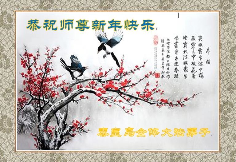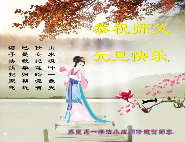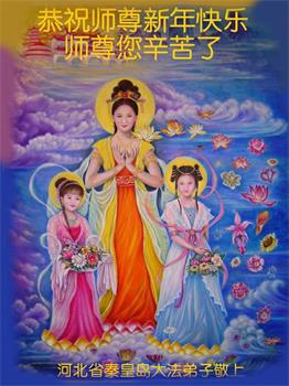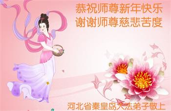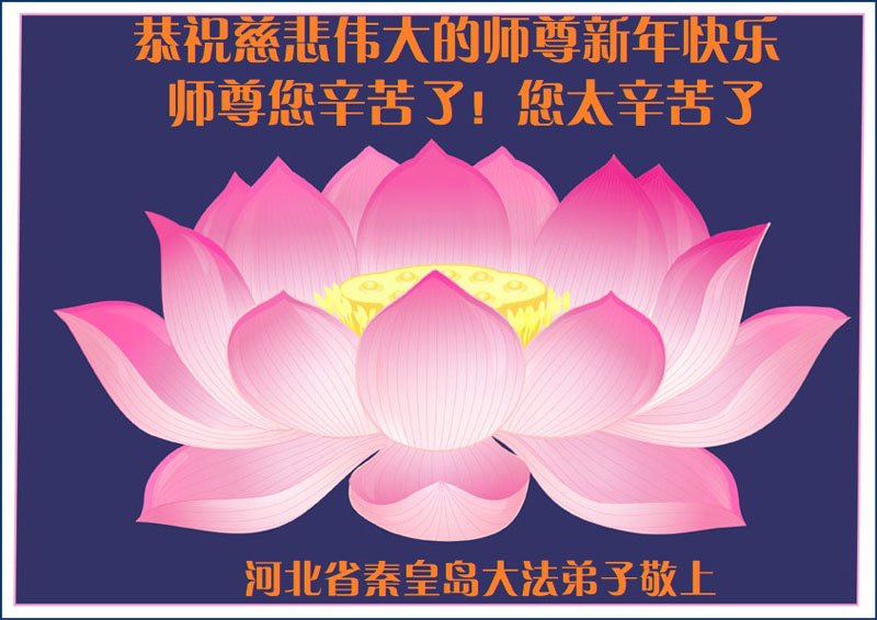 师父新年好!师父辛苦了! 在新的一年里大法弟子努力做好三件事,不辜负师尊慈悲救度,让师尊多一份欣慰,少一份操劳。 谢谢师父! 河北省秦皇岛市一学法小组大法弟子敬上 河北省秦皇岛市大法弟子恭祝师尊新年快乐!