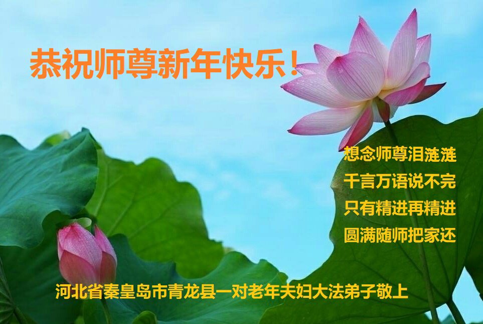 恭祝师尊新年快乐! 秦皇岛老年夫妇大法弟子 河北省秦皇岛大法弟子恭祝慈悲伟大的师尊新年快乐!