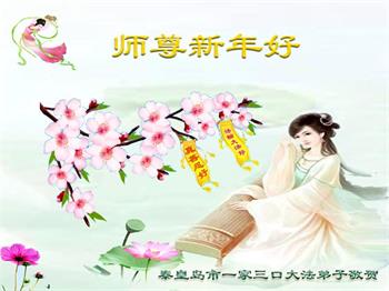 恭祝师尊新年快乐! 秦皇岛大法弟子一家七口 河北省秦皇岛大法弟子母子二人恭祝师尊新年快乐!