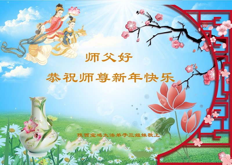 陕西宝鸡大法弟子三姐妹恭祝师尊新年好!