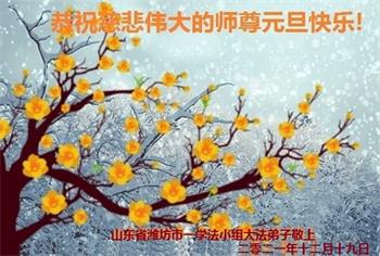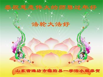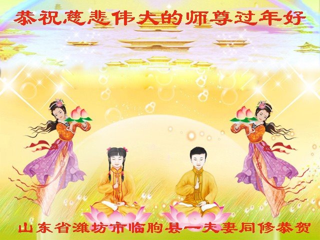 恭祝慈悲伟大的师尊新年好! 山东省潍坊市临朐县一夫妻大法弟子恭贺 山东省潍坊市临朐县一学法小组大法弟子恭祝慈悲伟大的师尊新年好!