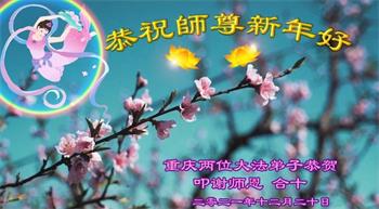 师父您好,师父您辛苦了!您为弟子操尽了心,感谢师父慈悲救度。弟子唯有做好三件事,以报师恩。 重庆江北区一大法弟子恭祝师父新年快乐!