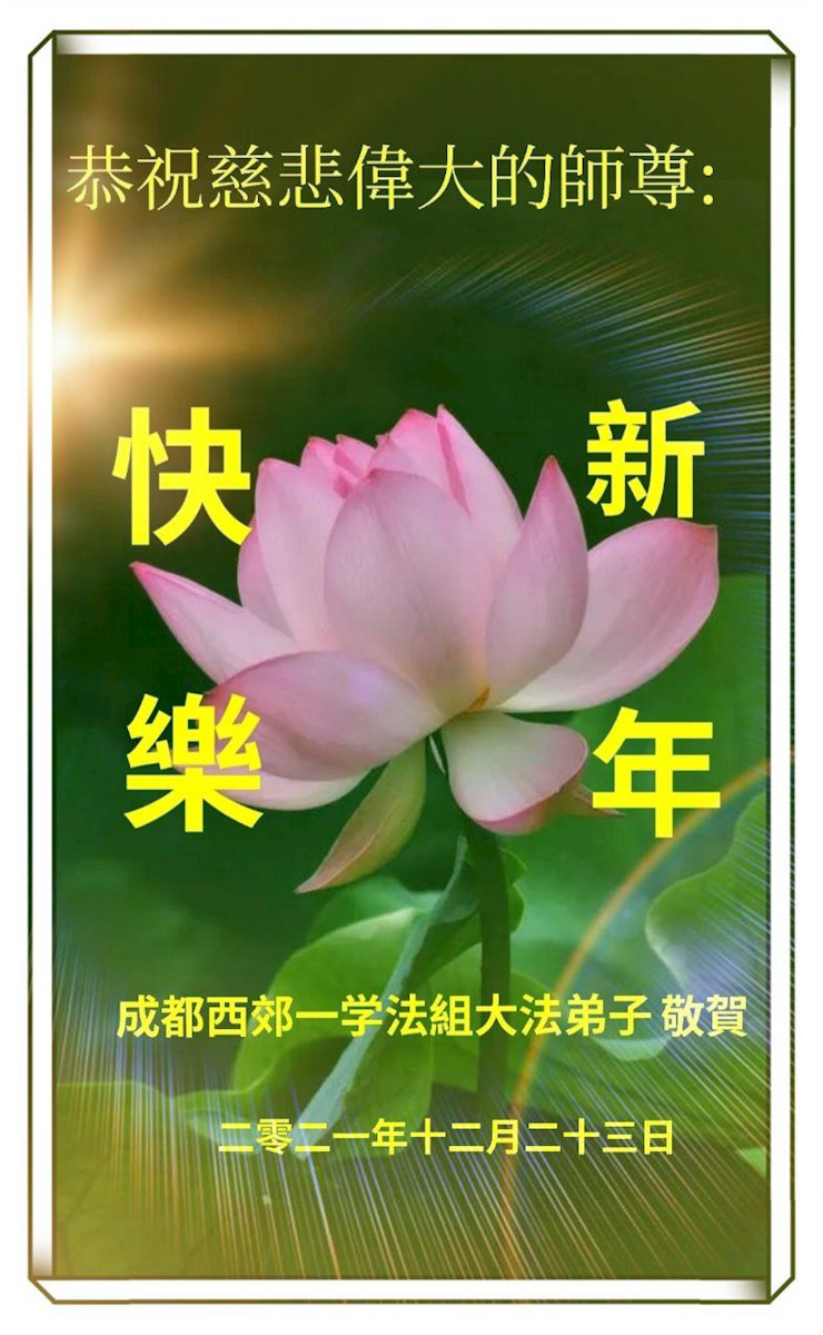 【明慧网二零二一年十二月三十日】 四川省成都市彭州市大法弟子恭祝师尊元旦快乐!