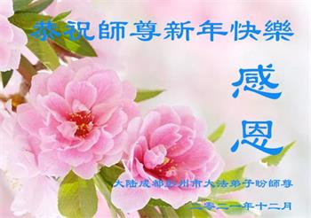 新年即将到来,我们以无比感激的心情向慈悲伟大的师尊问好! 四川成都市彭州市全体大法弟子恭祝师尊新年好!