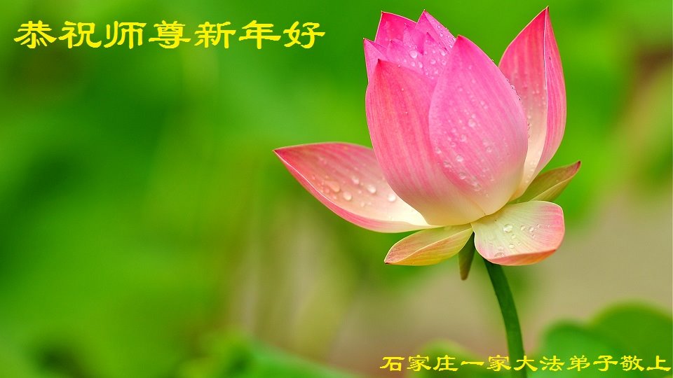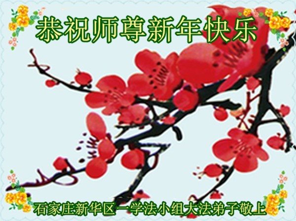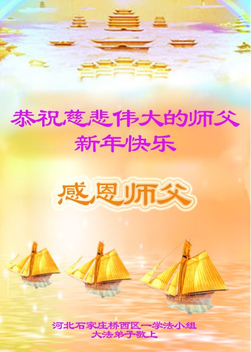 石家庄一家大法弟子向慈悲伟大的师尊问好!恭祝师尊新年好! 河北石家庄市一学法小组大法弟子恭祝师父新年快乐!