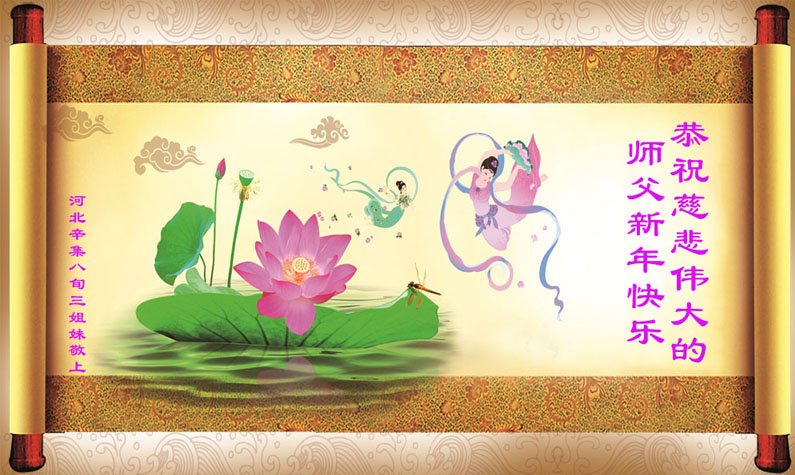 师父您辛苦了!弟子一定要精進,不忘誓约,完成使命。请师尊加持弟子的正念,请师尊放心,弟子一定走正最后的修炼路。 恭祝师尊新年快乐!全家人叩谢恩师,谢谢师尊慈悲苦度。 河北省石家庄市新华区一学法小组大法弟子恭祝师尊新年好!