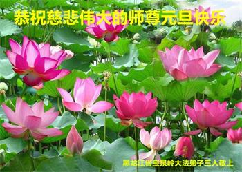 叩拜师尊!感恩师尊慈悲苦度! 黑龙江省宝泉岭大法弟子三人恭祝师尊元旦快乐!