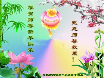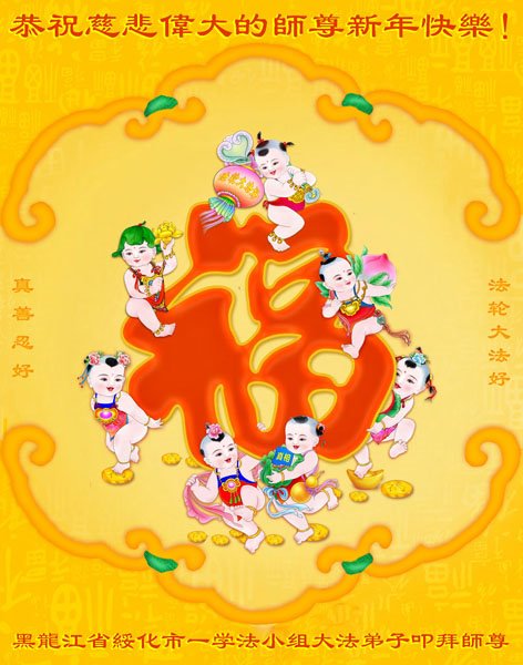 伟大师尊创世主 法正天地新宇成 感恩师尊慈悲度 大劫当前救众生 法中归正再精進 返本归真随师行 但愿众生都得救 九字真言记心中 法轮大法好、真善忍好 黑龙江省绥化市一学法小组大法弟子恭祝师尊新年快乐!