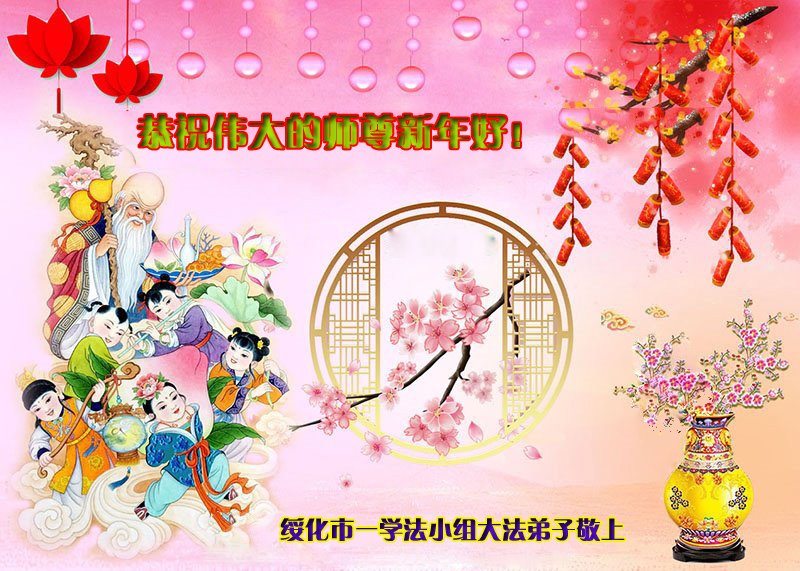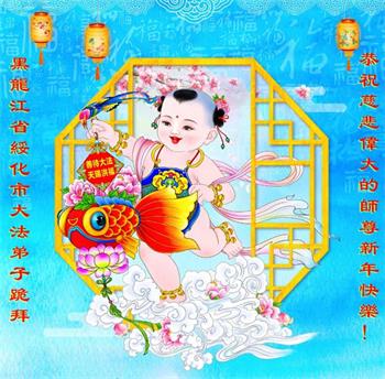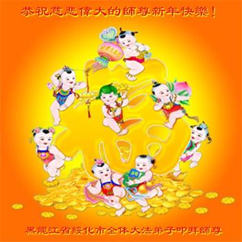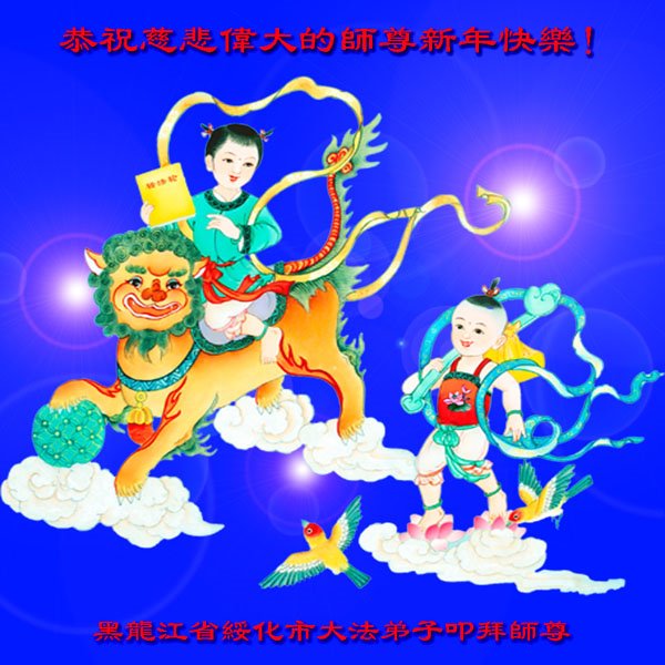 师尊您辛苦了!在新的一年里,弟子们要勇猛精進,多学法,以法为师,向内找,修好自己,多救人,做好三件事。走好师尊给安排的修炼道路,跟师尊回家! 黑龙江省绥化市大法弟子恭祝慈悲伟大的师尊新年快乐!