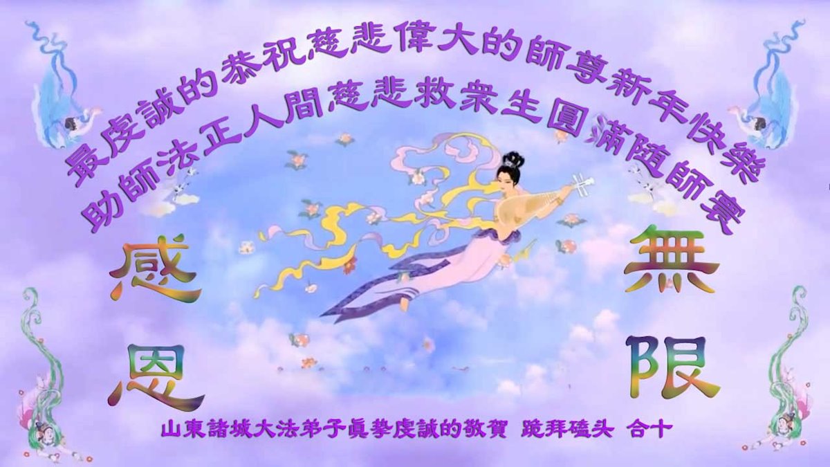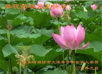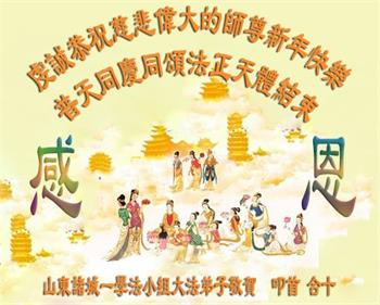 山东省潍坊市两位大法弟子恭祝慈悲的师尊新年快乐!