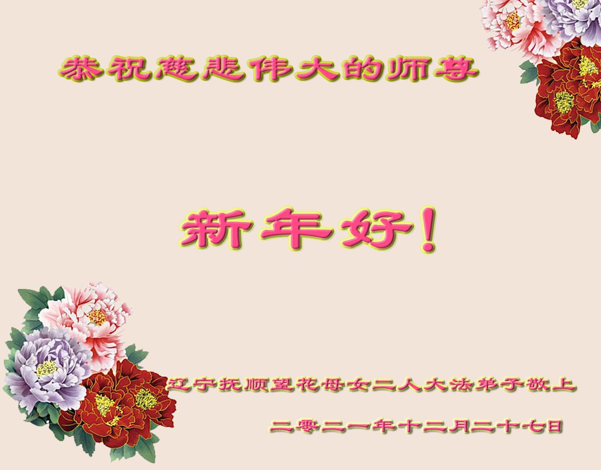 我是辽宁抚顺望花的一名大法弟子,在新年来临这际表达弟子对师尊的思念和感恩。弟子会记住师尊的教诲,不断修正自己,努力做好三件事,救度更多的众生。 谢谢师尊! 辽宁抚顺望花一大法弟子敬上 二零二一年十二月二十八日 辽宁抚顺望花母女二人大法弟子恭祝慈悲伟大的师尊新年好!