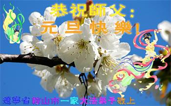 辽宁省鞍山市一家大法弟子恭祝师父元旦快乐!