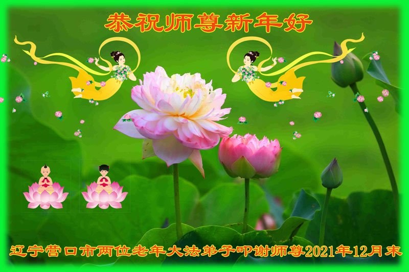 辽宁省营口市两位老年大法弟子恭祝师尊新年好!