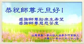 山东青岛一家七位大法弟子恭祝师尊元旦快乐!