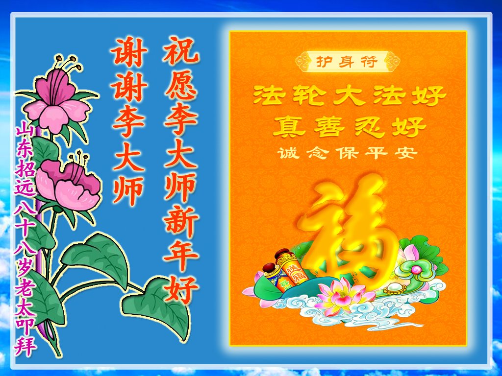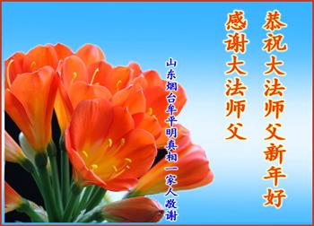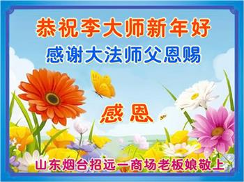 | 【明慧网二零二一年十二月三十日】(明慧网记者综合报道)时间如梭,又迎来了万物更新的又一年。在2022年新年钟声响起时,在法轮大法中受益的中国民众遥寄对法轮大法创始人的感恩。在此末法末劫,灾难、瘟疫层出不穷之时,诚信“法轮大法好、真善忍好”,他们得到了大法师父给予的保护与福报。 山东省招远市一位商店老板说:“这几年来,法轮功学员不断给我送真相资料,我都一一接受,看完后,我又送给来店的顾客看。法轮功学员救人做真相资料需要的辅助材料,我都尽量满足供应。结果我的生意越做越红火。我知道这一切是大法师父给我的福报。” 四川成都一位大法弟子家属表示:“我于2017年被查出患有结肠癌,我的手术成功,很快康复出院。出院后的几年里,我和老伴一样,天天听您的讲法,我越听心里越亮堂。我虽说已近83岁了,但身心轻松,头脑清醒,无癌症迹象了。尊敬的李大师:我知道我幸福的一切都是您的赐予,都是老伴修炼大法我受的益。我会一如既往的支持老伴的修炼,也会一直诚心敬念‘法轮大法好,真善忍好’九字真言。” 敬念“法轮大法好” 免遭胃癌化疗的痛苦 感谢李大师救命之恩!山东省烟台市招远市乡村一老伯携全家人恭祝李大师新年好! 我今年近八十岁,在我胃癌手术的痛苦中,我听了法轮功学员的忠告,天天诚心敬念“法轮大法好”、“真善忍好”九字真言,六年未做化疗,也未吃药,复查结果良好,再也不用吃化疗的苦头了。 我非常感谢李大师的救命之恩!我携全家人叩拜救命恩人,恭祝李大师新年好! 明大法真相 瘟疫肆虐中 生活踏实、平安黑龙江哈尔滨市明真相的世人恭祝李洪志大师新年好! 大师辛苦了!在新年来临之际,我们全家人,向慈悲伟大的李大师献上最诚挚的新年祝福和感恩:恭祝大师新年快乐!万事如意!感谢大师佛恩浩荡,救度无量众生!更使我们全家身心受益得救度! 在这瘟疫肆虐、多灾多难的当下,我市区疫情也很严重,人们惊恐不安、人人自危。而我们全家却内心踏实,无所畏惧,心怀善念,诚念“法轮大法好,真善忍好!”这避疫良方,相信在大师的慈悲保护下,定会使全家平安健康,渡过劫难,拥有美好的未来! 哈尔滨市明真相的世人全家敬拜 二零二一年十二月十九日 支持法轮大法 大法弟子的丈夫遇车祸无碍吉林省通化市一大法弟子和丈夫恭祝慈悲伟大的师尊新年快乐! 恭祝师尊新年快乐!感恩慈悲伟大的师尊您辛苦了! 弟子无法用语言表达对师尊的感恩!在16天前,是您救了我丈夫的生命。他在过马路的时候,被一辆轿车撞出好几米远。他身体没有一点伤,后脑勺有鹅蛋黄大,带有血印,没有包。我是第二天发现他后脑勺的伤,问他:“你这是被谁打的?”他说:“谁打我干什么?”“那你这是怎么弄的?”他说:“不知道,只觉的有点疼。”他自己还不知道有伤呢。 在我的追问下,他说:“说出来,怕吓着你。”我说:“吓着也得说呀。”他才说是被车撞了,是司机把他扶起来,走到路边,他自己感觉身体没问题,就回来了。我问他怎么回来的?他说走回来的。我激动的说:是师父救了你,谢谢师父救命之恩! 我们夫妻叩谢师父救命之恩。叩谢师父给予的所有。弟子无以回报,唯有精進实修,修好自己,做好三件事,兑现誓约。跟您回家。 我们全家叩拜师尊! 恭祝师尊新年快乐! 二零二一年十二月十七日 支持家人修炼法轮大法 感谢大法师父的护佑河北唐山丰润一大法弟子家属恭祝大法师父新年好! 大法师父您好!您辛苦了!我们作为大法弟子的家属真是用尽千言万语也表达不了您给我们全家带来的幸福,我们只有用行动来报答您对我们的保护,那就是继续支持家人修炼,讲真相,多救人,希望更多的家庭像我家一样得到大法师父的护佑,幸福快乐!感谢大法师父的护佑! 迫害中仍坚信法轮大法好 感恩大法师父赐予健康、幸福四川成都大法弟子家属恭祝李大师元旦快乐! 尊敬的李大师:您好! 您辛苦了!我老伴是1998年喜得法轮大法的老弟子。我虽说还没走入正法修炼,但我非常支持老伴的修炼。在这血雨腥风的二十多年里,尽管家里几次被抄,老伴几次被绑架,甚至被非法判刑,我仍坚信您的大法是高德佛法、是教人向善的正法。 尤其体验到了您讲的“一人炼功,全家人受益”是千真万确的。我于2017年被查出患有结肠癌,急需住院开刀手术治疗。在您的慈悲保护下,我的手术成功,很快康复出院。但医生说,手术成功了,还需几个疗程的化疗,放疗,才能巩固手术成功的效果,达到完全康复的目地。可我心中有数,深信李大师的无所不能,坚信李大师的超常,倍感有李大师的护佑,我不会有任何危险的。 出院后的几年里,我和老伴一样,天天听您的讲法,还听明慧音频的《明慧周刊》、天音净乐、神传文化、绝处逢生等广播。我越听越爱听,越听心里越亮堂。了解了大法洪传全球的盛况。 我虽说已近83岁了,但身心轻松,头脑清醒,耳聪明目,思维敏捷,无癌症迹象了;常随老朋友、老同事、老同学、老部下国内、国外到处旅游、观光,感到越活心越年轻,神清气爽,对未来信心满满。 就是在这中共武汉肺炎共武汉肺炎肆虐全球期间,我也没害,我也没害怕,我也知道这瘟疫是来淘汰坏人和中共邪*党-分子的,与我一点关系也没有,我早已选择三:退.(退出中共党员,团员,少先队员)了,属于有美好未来的生命。 尊敬的李大师:我知道我幸福的一切,都是您的赐予,
