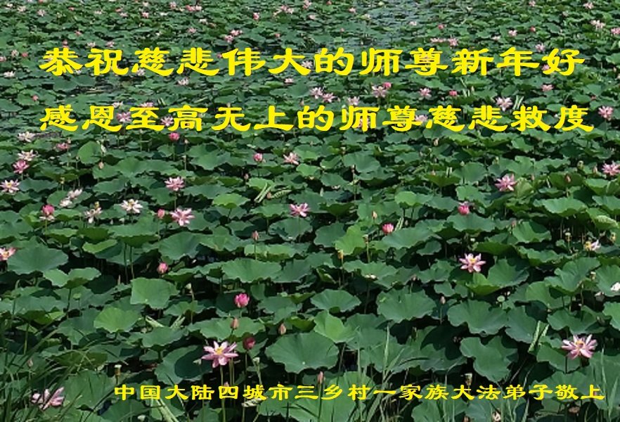中国大陆四城市三乡村一家族大法弟子恭祝慈悲伟大的至高无上的师尊新年好!新年快乐!