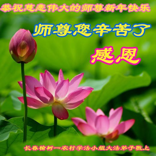感恩师父的慈悲救度! 吉林省长春市榆树市一乡村学法小组大法弟子恭祝师尊新年快乐!