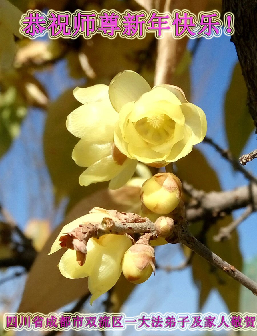 四川省成都市双流区一大法弟子及家人敬贺师尊新年快乐!