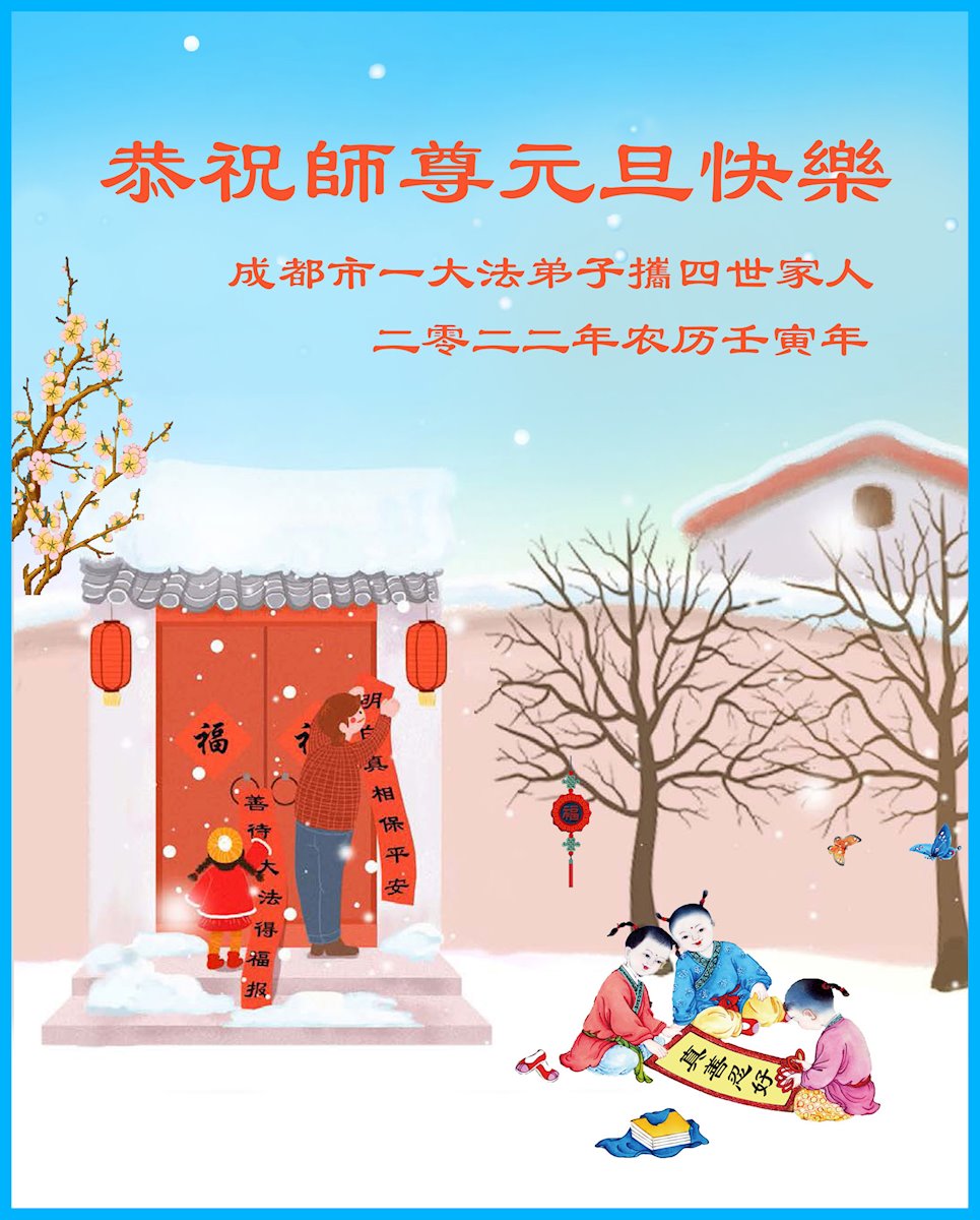 四川省成都市一大法弟子及全家恭祝师尊新年快乐!
