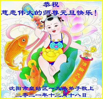 【明慧网二零二一年十二月三十一日】 辽宁省沈阳市皇姑区家庭大法弟子恭祝师尊新年快乐!