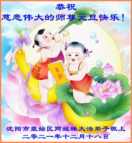恭祝:慈悲伟大的师尊元旦快乐! 辽宁省沈阳市皇姑区两姐妹大法弟子恭祝慈悲伟大的师尊元旦快乐!