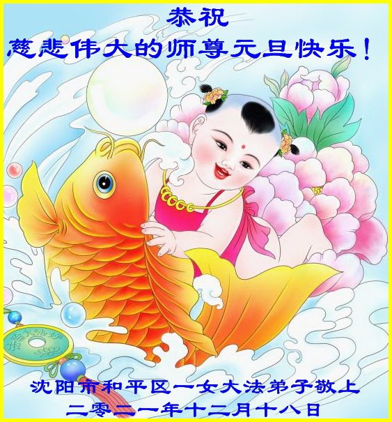 恭祝:慈悲伟大的师尊元旦快乐! 辽宁省沈阳市沈河区一大法弟子恭祝慈悲伟大的师尊元旦快乐!