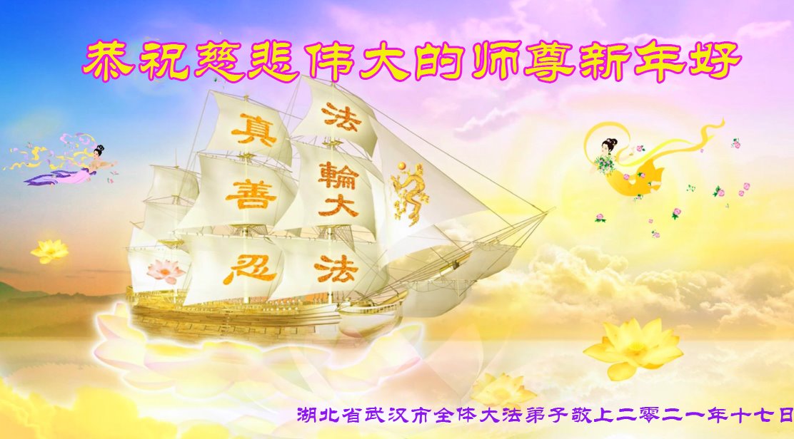 湖北省武汉市硚口区全体大法弟子恭祝师尊新年快乐! 精進 实修 救度众生 正念 正行 告慰师尊 湖北省武汉市全体大法弟子恭祝师尊新年快乐!