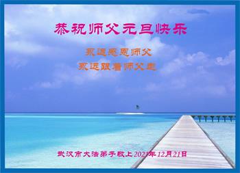 湖北省天门市干驿镇大法弟子恭祝慈悲伟大的师父元旦快乐! 湖北省武汉市武昌区一学法小组大法弟子恭祝师父元旦快乐!