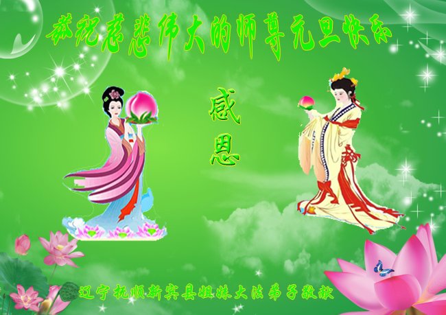 辽宁抚顺新宾县姐妹大法弟子敬献 辽宁省丹东东港市一学法小组大法弟子恭祝慈悲伟大的师尊新年快乐!